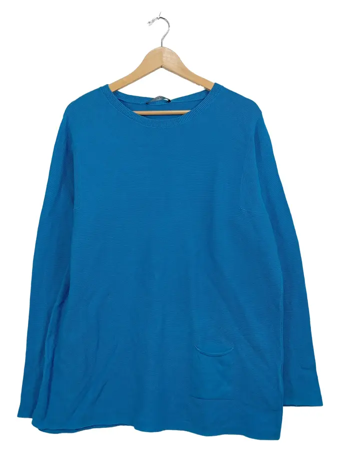 Damen Pullover Strickpullover Gr. 44 XXL Türkis Bio-Baumwolle Basic