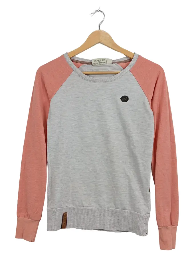 Damen Pullover Sweatshirt Gr. S Grau Rosa Raglan Casual