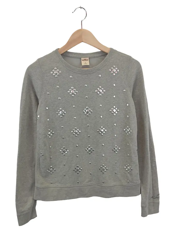 Damen Pullover Sweatshirt Grau Gr. 36/S Nieten Applikationen Casual
