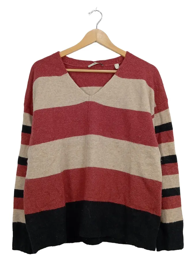 Damen Pullover V-Ausschnitt Gestreift Gr. L Rot Beige Schwarz