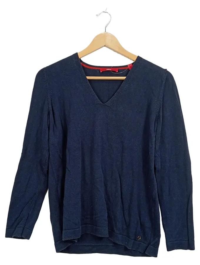 Damen Pullover V-Ausschnitt Langarm Blau Gr. 40 Basic