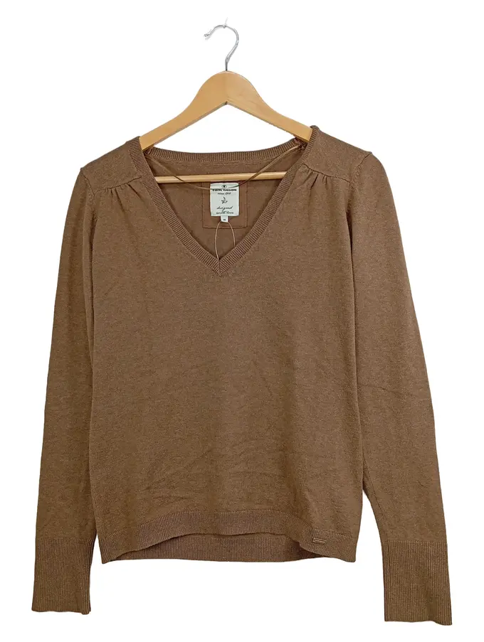 Damen Pullover V-Ausschnitt Langarm Braun Gr. M
