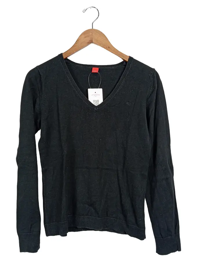 Damen Pullover V-Ausschnitt Langarm Gr. 40/L Schwarz Casual