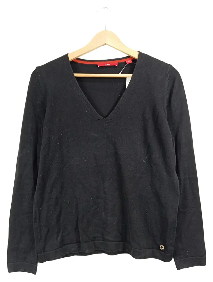 Damen Pullover V-Ausschnitt Langarm Schwarz Gr. 36 Basic