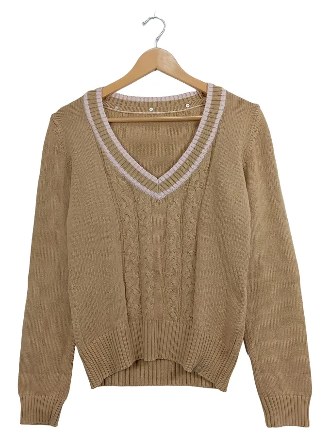 Damen Pullover V-Ausschnitt Strick Beige Einheitsgröße