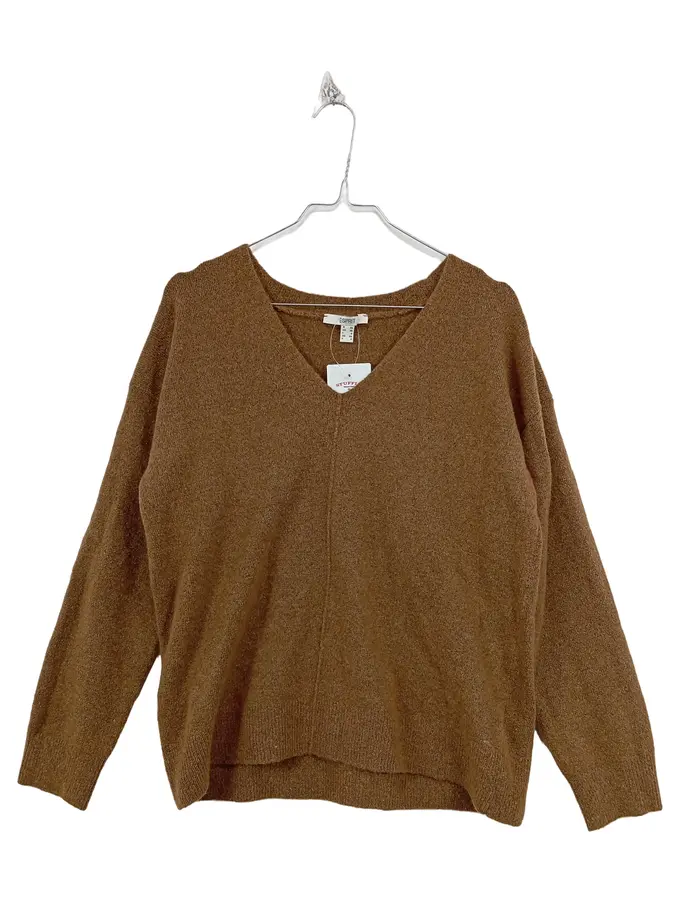 Damen Pullover V-Ausschnitt Strick Wolle Mix Braun Gr. 34;XS Casual