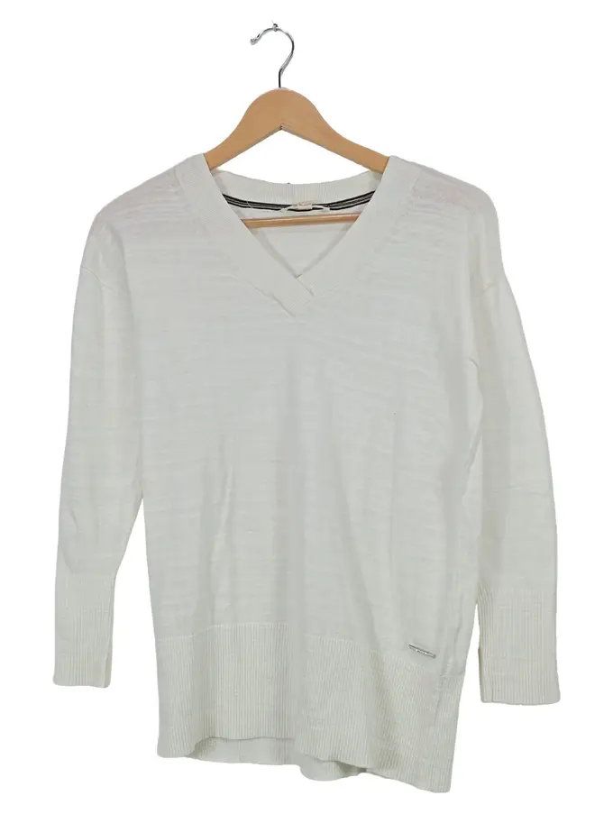 Damen Pullover V-Ausschnitt Weiß Gr. XS Langarm Basic Strick