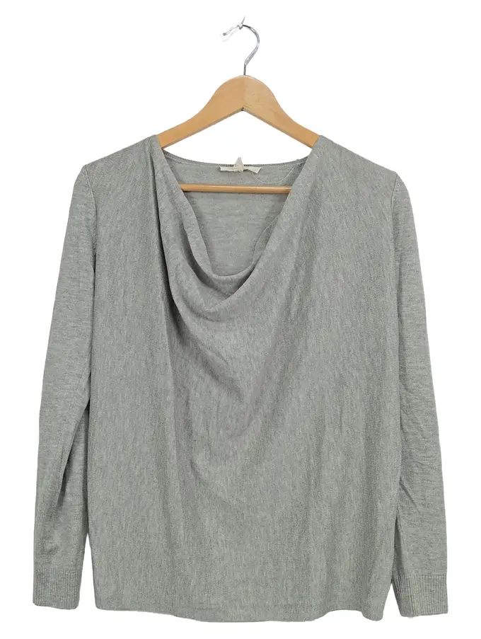 Damen Pullover Wasserfallkragen Langarm Grau Gr. XS 34