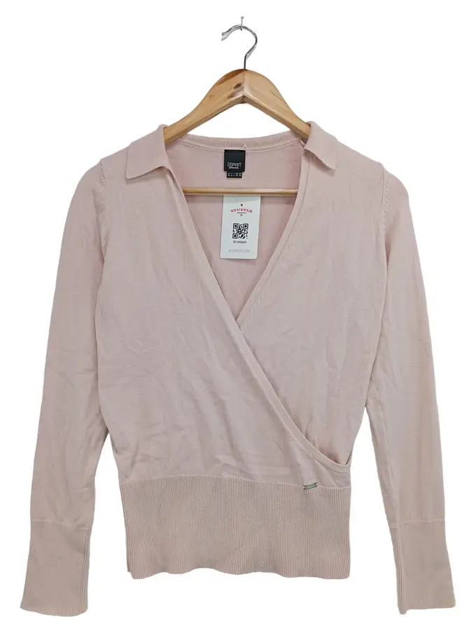 Damen Pullover Wickeloptik Rosa Gr. 34;XS Klassisch Elegant