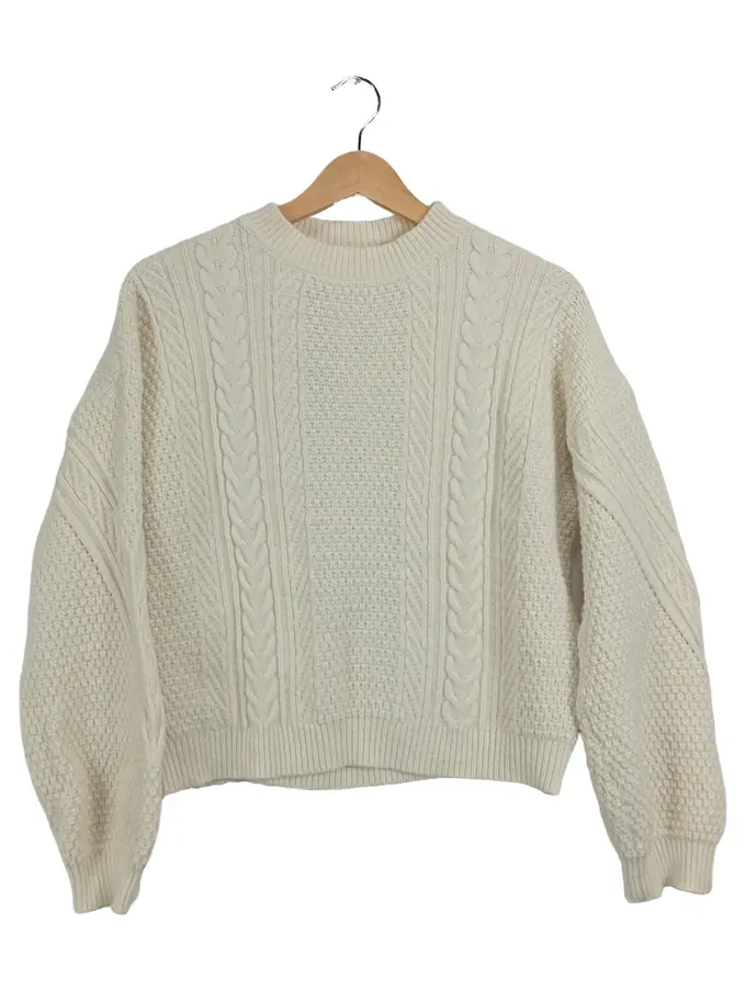 Damen Pullover Zopfmuster Strickpullover Gr. 36/S Beige Creme