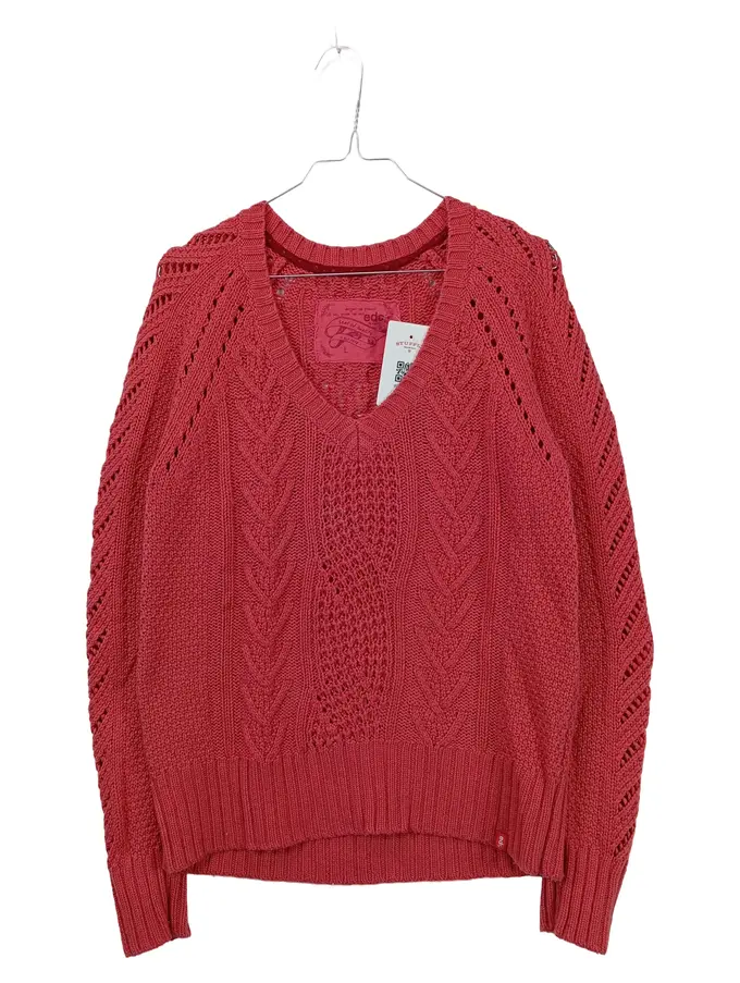 Damen Pullover Zopfstrick Lammwolle Pink Gr. L