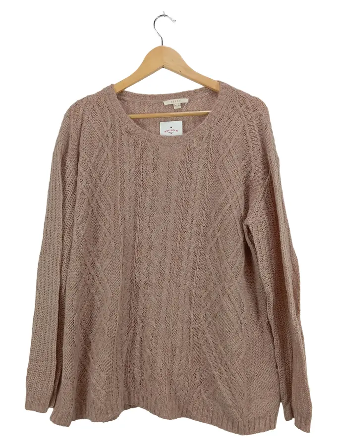 Damen Pullover Zopfstrickmuster Beige Gr. 42/XL Langarm Freizeit