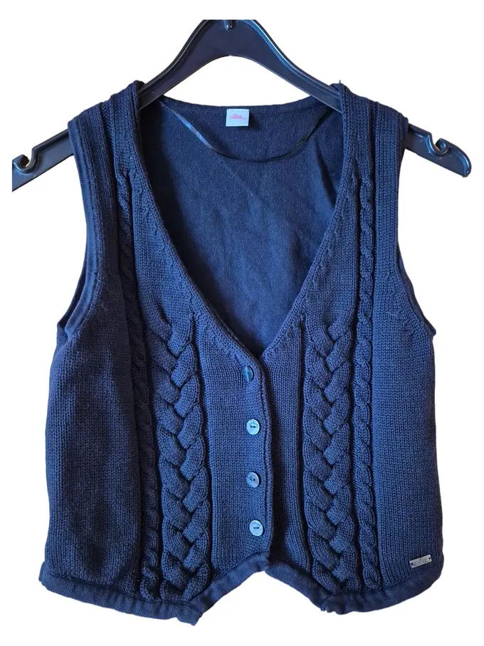 Damen Pullunder Schwarz Gr. 36/S Zopfstrick Baumwolle Casual
