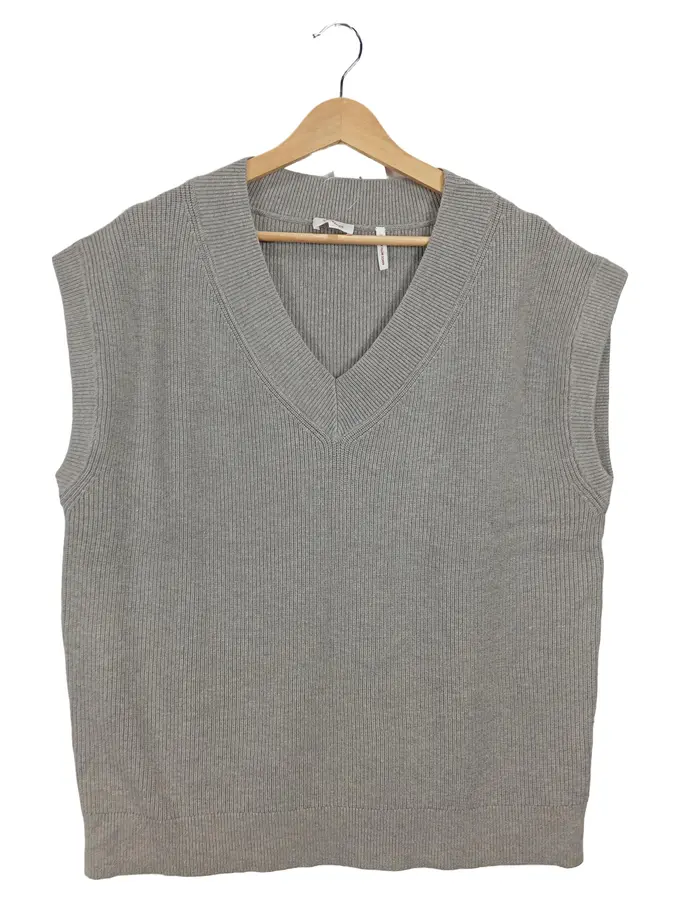 Damen Pullunder Strickweste V-Ausschnitt Gr. 44 Grau Basic