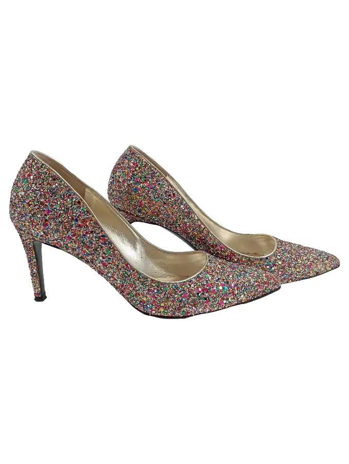Damen Pumps Glitzer High Heels Mehrfarbig Gr. 37