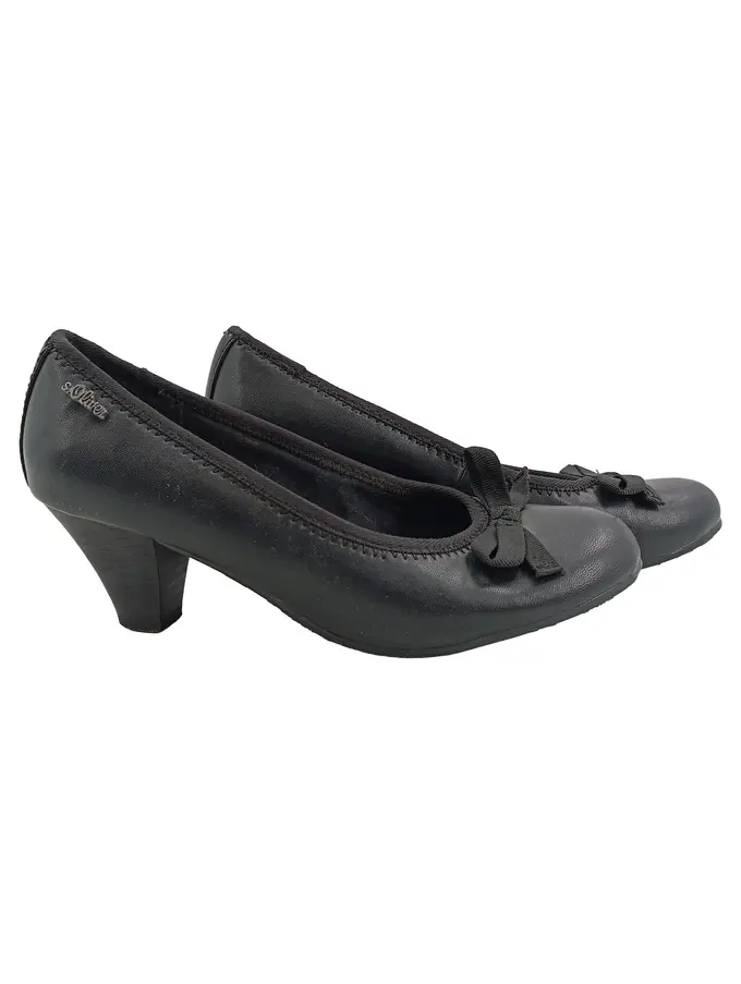 Damen Pumps Gr. 36 Schwarz Schleife Absatz 6 cm Klassisch