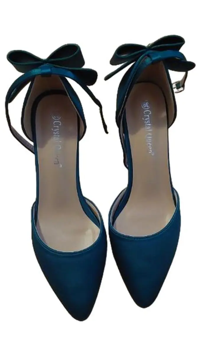 Damen Pumps Gr. 39 Türkis Elegant mit Schleife High Heels