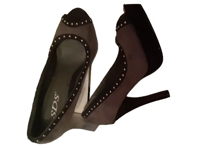 Damen Pumps Peep Toe Plateau High Heels Schwarz Gr. 36 Elegant Nieten