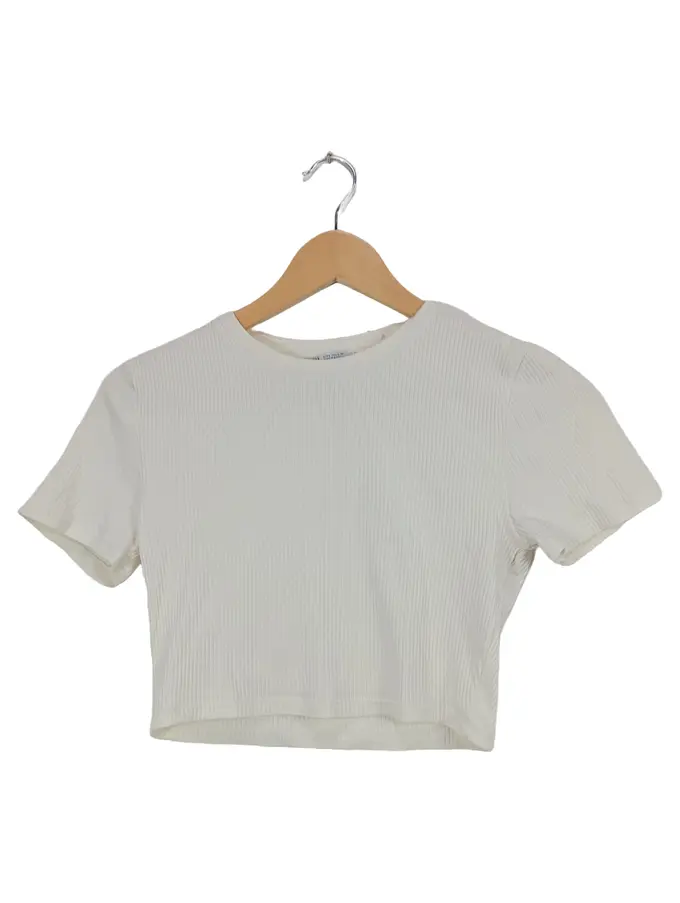 Damen Ripp Crop T-Shirt Kurzarm Weiß Gr. 40/L Basic