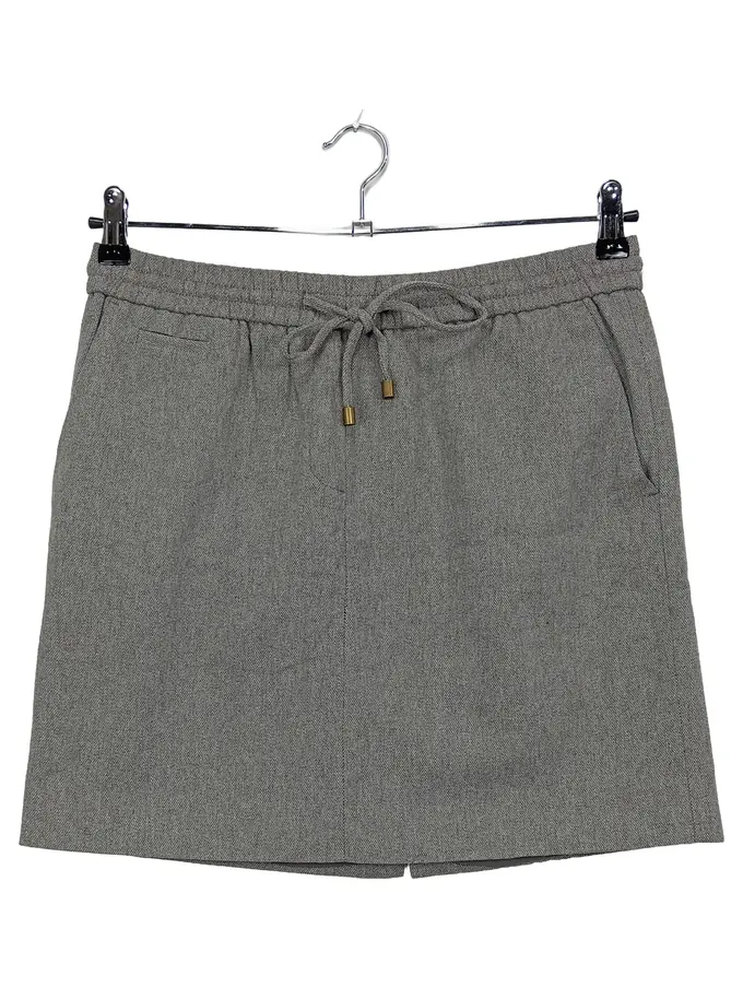 Damen Rock Gr. 38/M Grau Meliert Kordelzug Wolle Mix