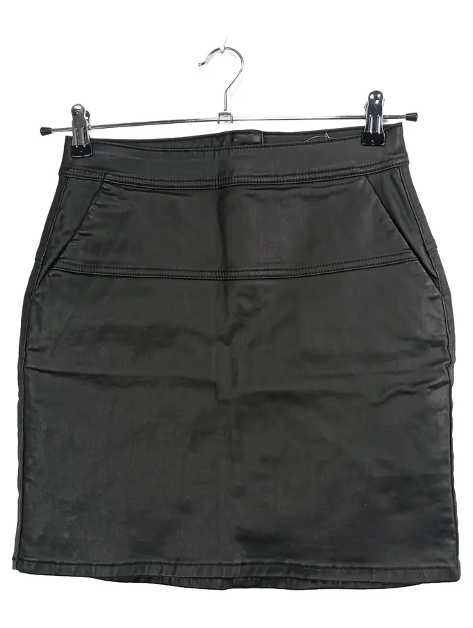 Damen Rock Minirock Gr. 34/XS Schwarz Beschichtet Baumwoll-Mix Modern