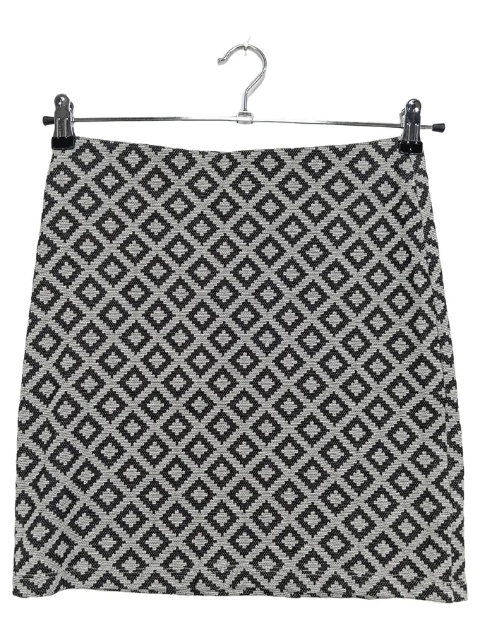 Damen Rock Minirock XS 34 Schwarz Weiß Geometrisch Baumwolle