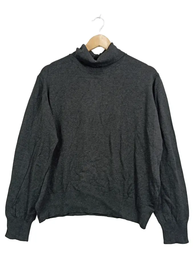 Damen Rollkragen Pullover Gr. XL Grau Basic Langarm