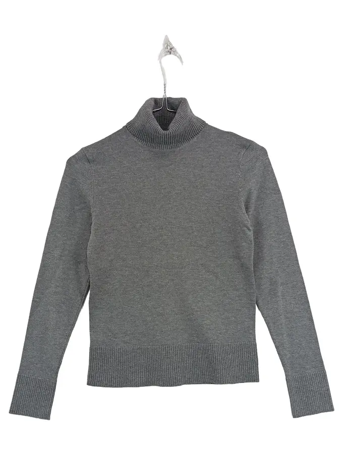 Damen Rollkragen Pullover Strickpullover Basic Grau Gr. 34 XS Langarm