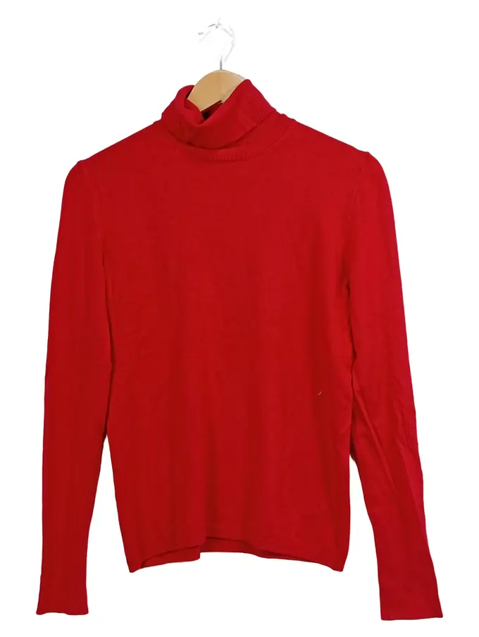 Damen Rollkragenpullover Rot Gr. 38/M Viskose Langarm Basic