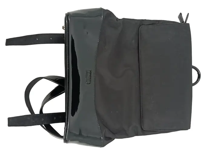 Damen Rucksack Schwarz Lackleder Optik Nylon Elegant