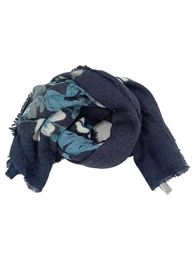Damen Schal Blau Florales Muster Polyacryl 120x130 cm Fransen Casual