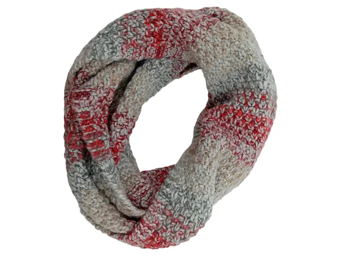 Damen Schlauchschal Loop Schal Grau Rot Meliert Strick