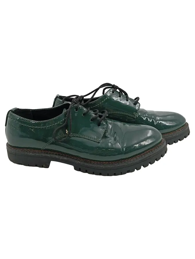 Damen Schnürschuhe Gr. 39 Grün Lackleder Derby Business