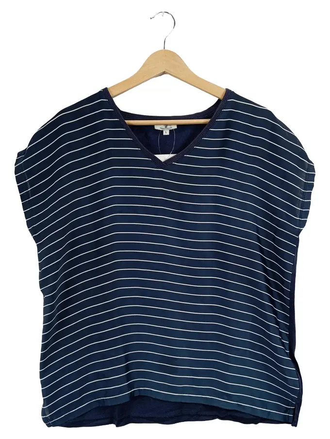 Damen Shirt Bluse Streifen Maritim Blau Weiß Gr. L