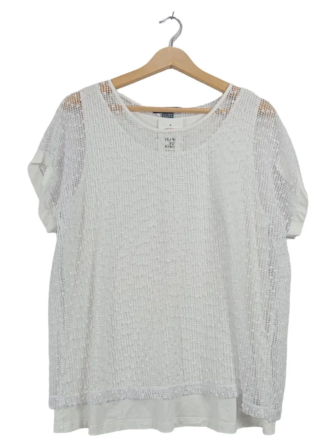 Damen Shirt Netz-Optik Weiß Gr. 44 Kurzarm Casual Top