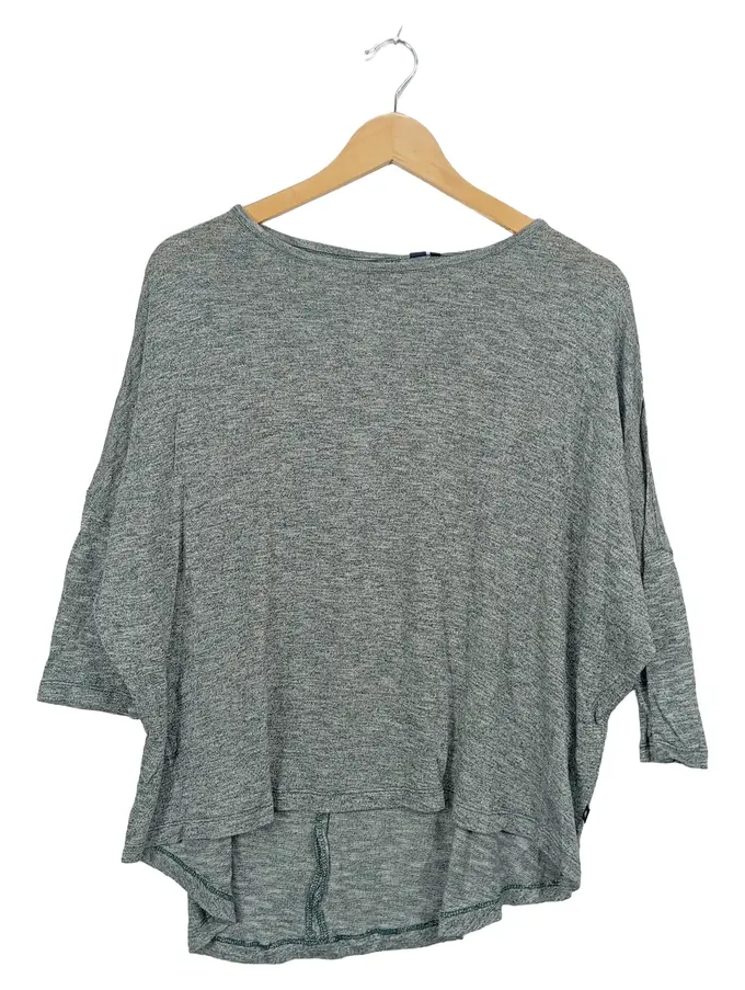 Damen Shirt Pullover Gr. XS grau meliert Cut-Out Rücken
