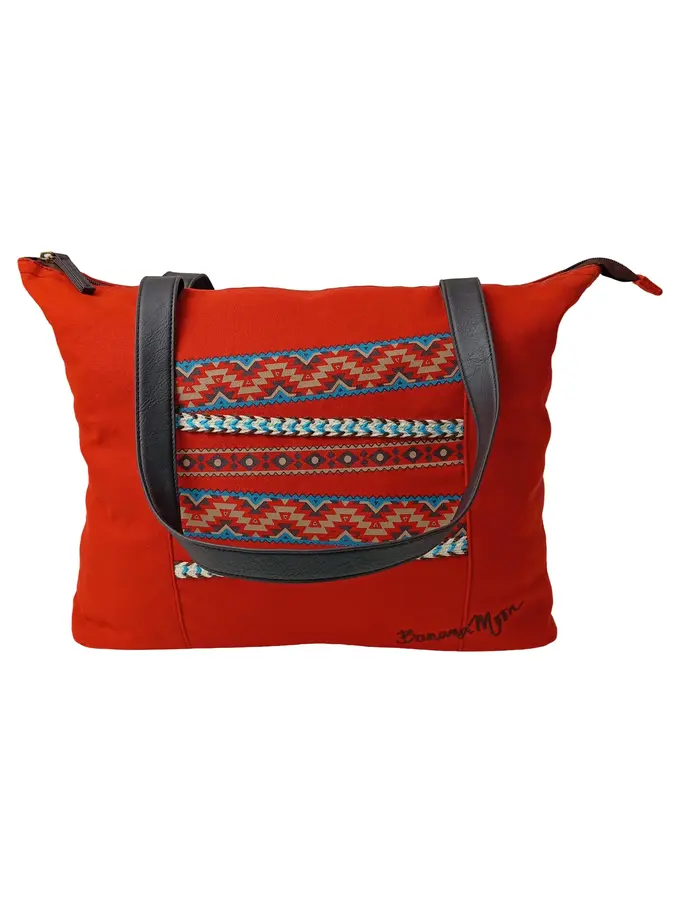 Damen Shopper Tasche Rot Baumwolle Ethno Muster 44x30cm