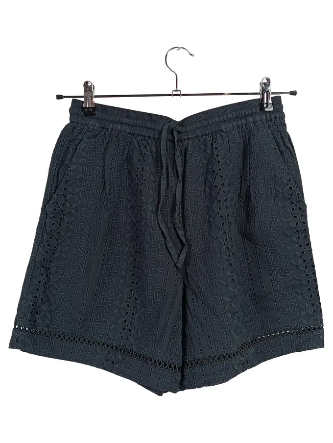 Damen Shorts Gr. 40 Schwarz Lochstickerei Baumwolle