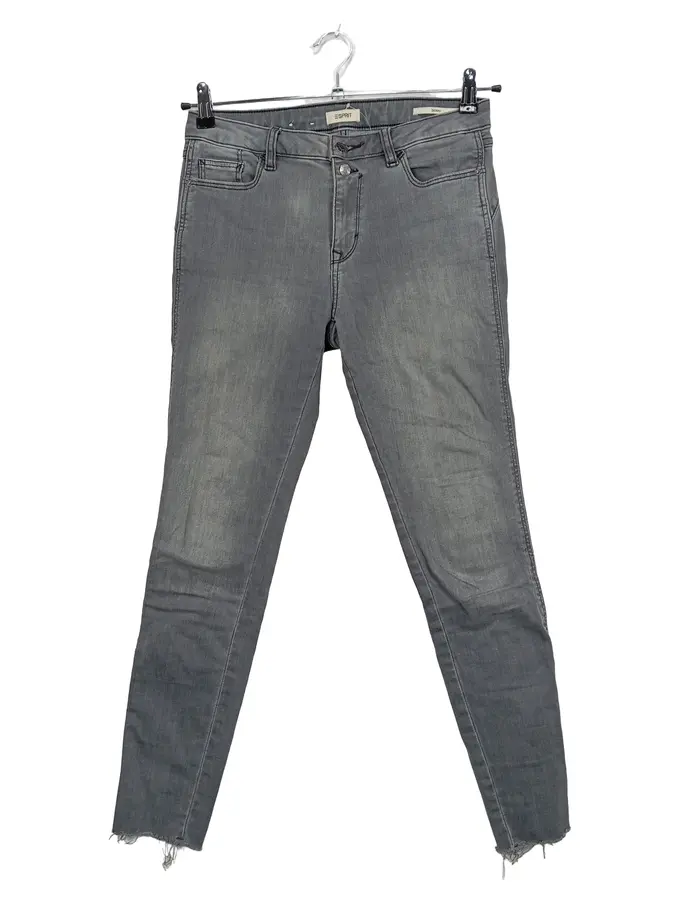Damen Skinny Jeans Grau W28 L28 Stretch Fransen-Saum