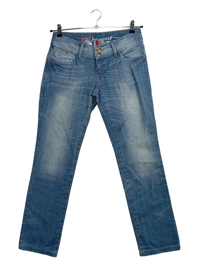 Damen Slim Fit Jeans Blau W28 L29 Used Look Stretch