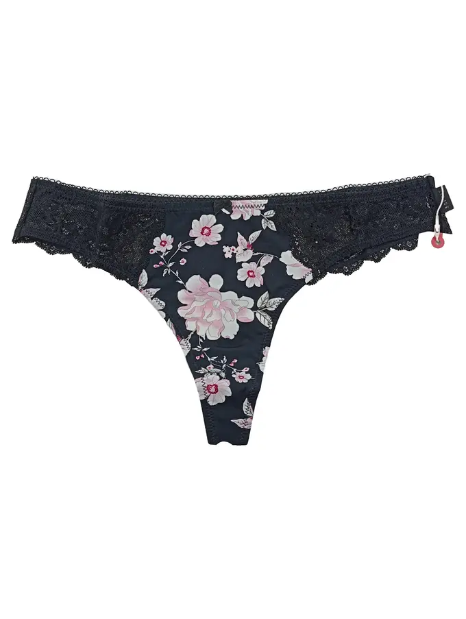 Damen Slip Gr. 36/S Schwarz Blumenmuster Spitze Elegant