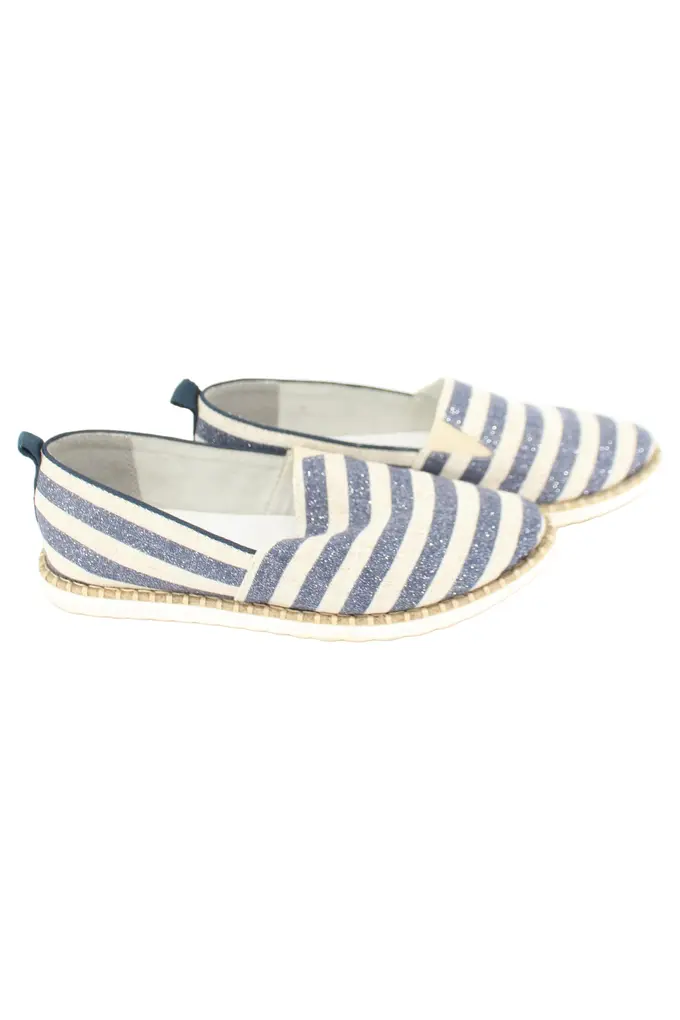Damen Slipper Gr. 36 Mehrfarbig Gestreift Glitzer Maritim Casual