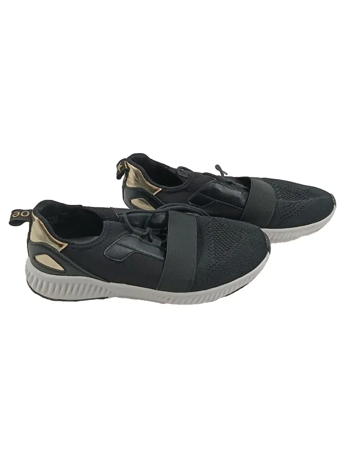 Damen Slipper Sneaker Schwarz Gold Gr. 40 Slip-On Sportlich