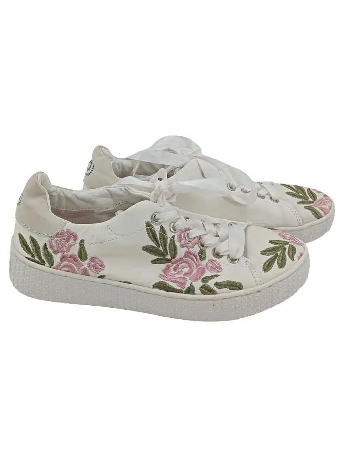 Damen Sneaker low 36 Weiß Blumenmuster Stickerei Freizeitschuh Feminin