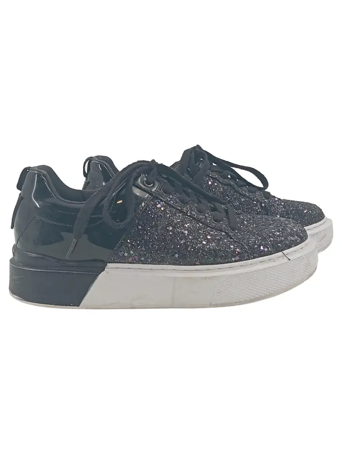 Damen Sneaker low Gr. 41 Schwarz Glitzer Modisch Plateau Schuhe