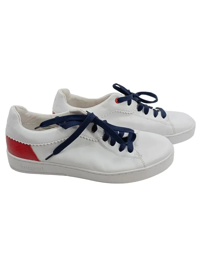 Damen Sneaker Low Leder Weiß Rot Blau Gr. 40 Casual