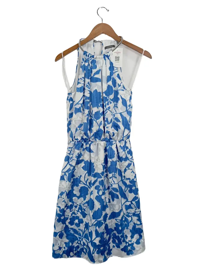 Damen Sommerkleid Blumenmuster Gr. 36 Blau Weiß Feminin