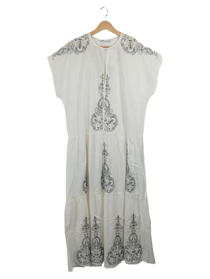 Damen Sommerkleid Bohemian Stickerei Weiß Größe 40/L
