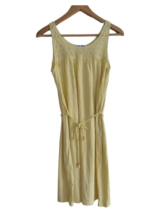 Damen Sommerkleid Gelb Gr. 36/S Casual Midikleid Baumwolle