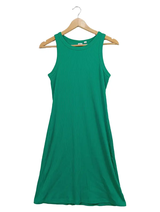 Damen Sommerkleid Gr. 34/XS Grün Casual Rippstrick Midikleid